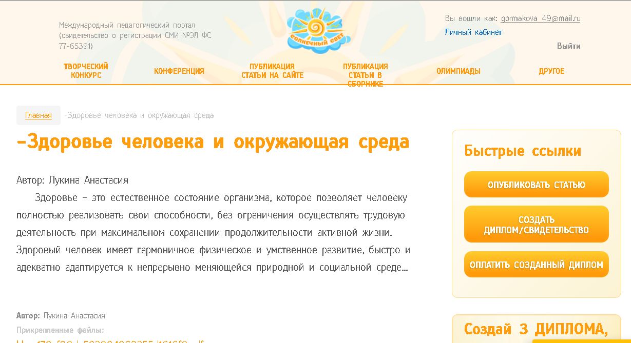 Статья на Международном педагогическом портале "Солнечный свет" 13.05.2018