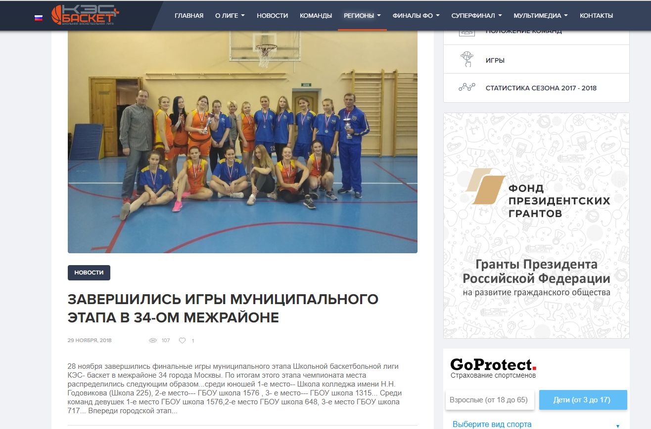 Статья на сайте "КЭС- баскет" 02.12.2018