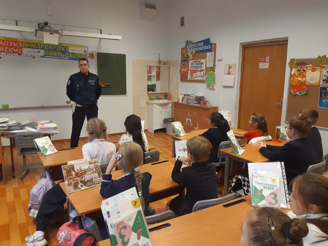 В 3 «А» классе состоялась встреча со старшим инспектором ОБ ДПС ГИБДД УВД по САО ГУ МВД России по г. Москве старшим лейтенантом полиции Писаным Сергеем Юрьевичем.